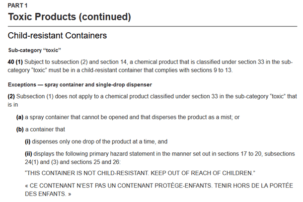 Canadian CCCR 2001 Requirements: CRC’s (Child-resistant Containers) – When are they required?