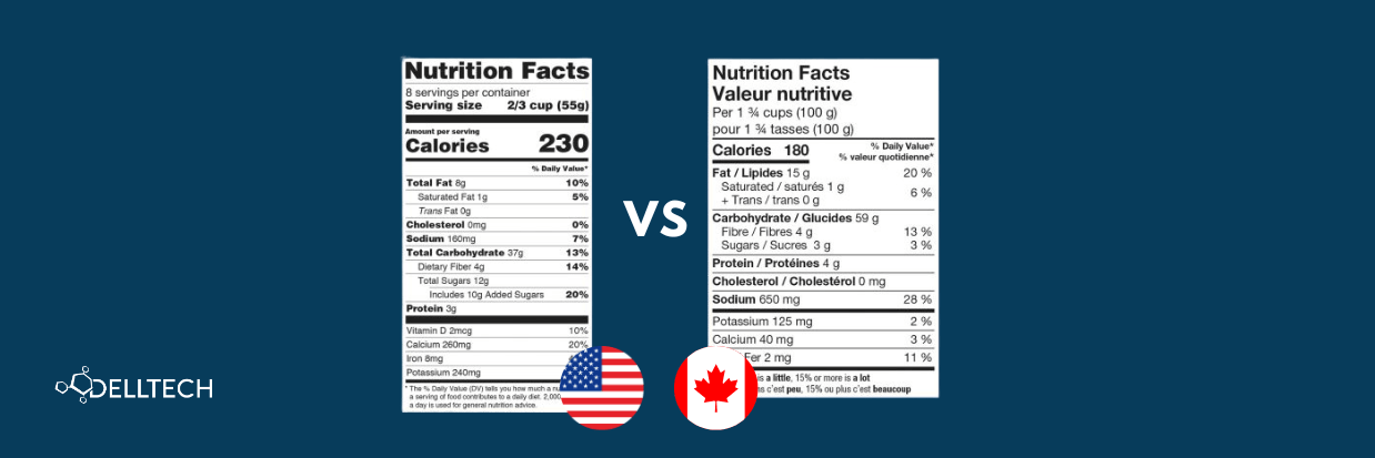 One of the most common questions from Dell Tech’s US clients is whether a US food label can be used compliantly in Canada. While US and Canadian food labels may appear similar at first glance, key differences in regulations make it impossible to create a label that is fully compliant with both countries’ requirements. Below, we highlight several key differences and areas to consider when importing or exporting your product.