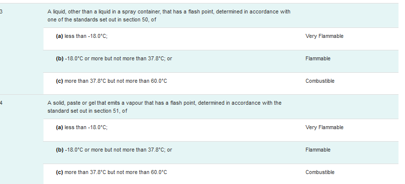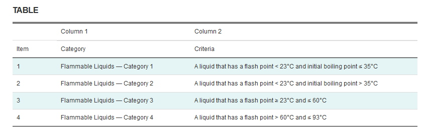 If you look at the tables provided above, you’ll see that there are VERY DIFFERENT Flash Point cut-off values as well as different mandatory phrase requirements for a ‘combustible liquid’.