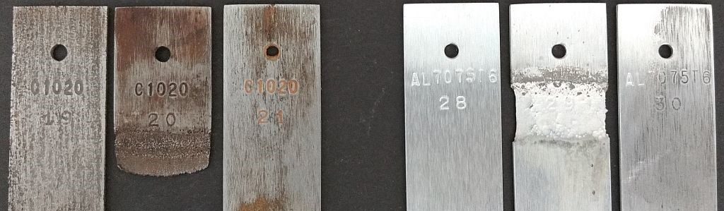 Three mild steel specimens of SAE 1020 steel and three 7075-T6 non-clad Aluminum (with 120 grit finish) specimens are subjected to the test sample.