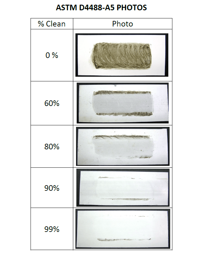 What Test: ASTM D4488-A5 – Standard Guide for Testing Cleaning Performance of Products Intended for Use on Resilient Flooring and Washable Walls.
