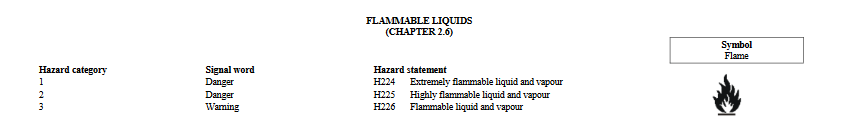 For the first example, we’ll look at the flammable symbol. This can be used for three different classifications under the Flammable Liquids category alone:
