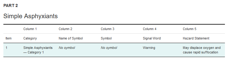 Simple Asphyxiant GHS Classification