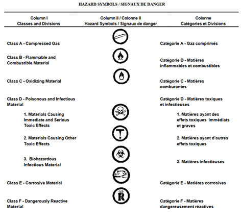 If you see these below CPR symbols on your current labels or SDSs intended for use in Canada, please ensure that you update your SDS and labels immediately. These symbols were revoked when the GHS regulations came into effect in Canada.